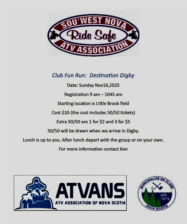 Monthly Meeting's are held the 2nd Wednesday of the Month at the Chebogue Aquatic Centre, Chebogue at 7 pm.
